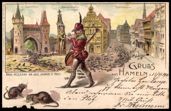 Σύμφωνα με τον θρύλο, η μεσαιωνική πόλη του Χάμελν υπέφερε από στρατιές αρουραίων. Ως από μηχανής θεός, την γλύτωσε ένας πλανόδιος γητευτής: συγκέντρωσε τα ενοχλητικά ζώα παίζοντας τη μαγική φλογέρα του και τα οδήγησε μακριά από την πόλη. Όμως στο τέλος έκλεψε και όλα τα παιδιά του Χάμελν. Το άρθρο γράφτηκε το 2002 αλλά είναι απολύτως επίκαιρο. Ο